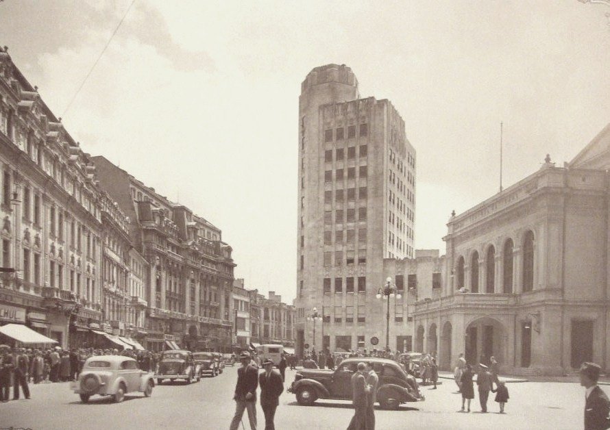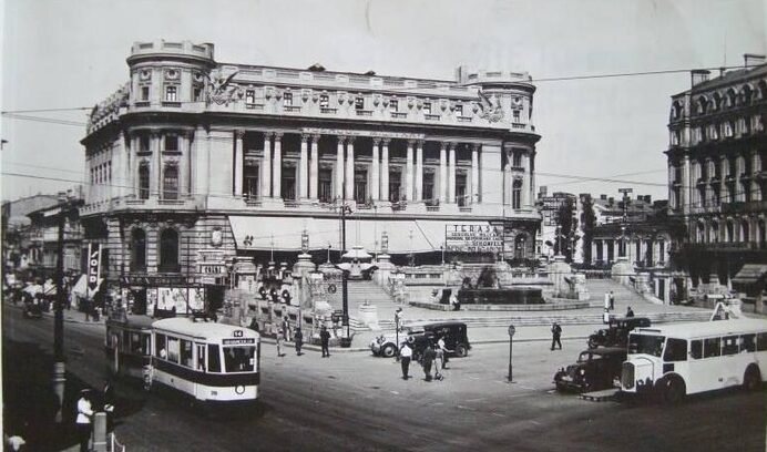 Clădirea Teatrului Național de pe Calea Victoriei a fost distrusă în timpul bombardamentului de la sfârșitul celui de-al doilea război mondial.